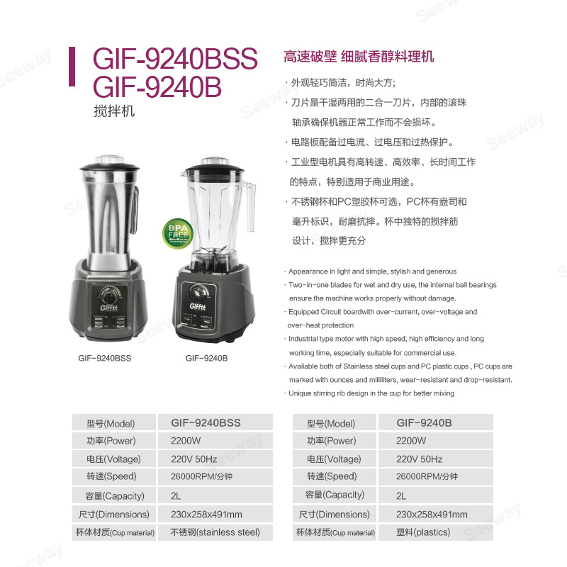 - Gifftt吉福士破壁机商用榨汁机家用沙冰机碎冰机料理机GIF-9240B